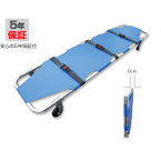 移動に便利な車輪付きの担架です。半分に折りたためて収納にも便利。