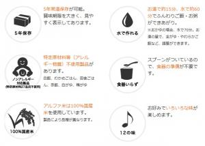 お湯か水を注いで、できあがり。非常食の定番ならアルファ米。
