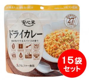 防災グッズアルファー食品 安心米 ドライカレー 15袋セット 【製造から5年保存】
