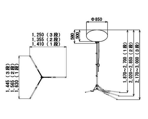 使用時サイズ 1,410×1,630×1,870〜2,700?(W×D×H)