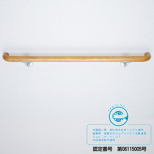 ここは空白です 横取付け専用の手すりです。ディンプル(くぼみ)加工を施し滑りにくくしました。天然木(ゴム集成材)を使用した手すりで、エコマーク認定商品です。サイズ:800