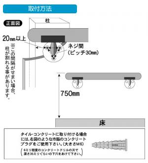 • 床面から750の高さを目安に、床面と水平になるように設置してください。