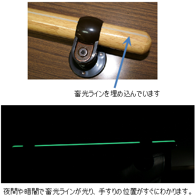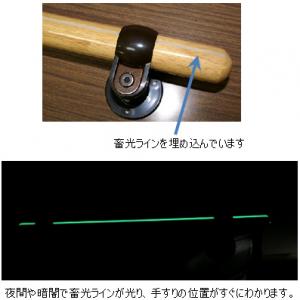 • 夜間や暗がりで蓄光ラインが光り、手すりの位置がすぐにわかります。
