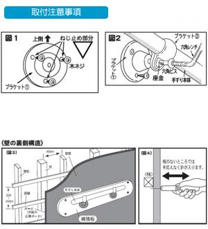 • 壁の裏側の柱の間隔と取付位置が合わない場合、柱の間に2?3cm厚くらいの補強板を壁の表側から取付け、この補強板に直接手すりをビス止めします。