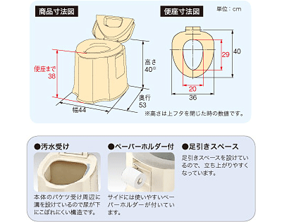 | 商品サイズ | 幅44×奥行53×高さ40cm(便座までの高さ38cm) |