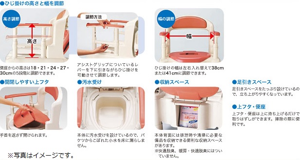 | 商品サイズ | 幅55×奥行60×高さ71〜87cm (便座までの高さ:キャスター付35〜44cm) |
