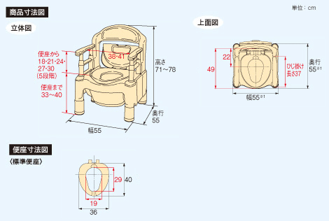 • 排泄姿勢・着座動作・移乗動作に配慮した超コンパクトサイズ