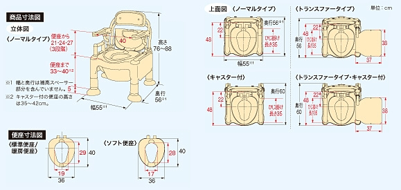 | 商品サイズ | 幅55×奥行60×高さ76〜88cm (便座までの高さ: キャスター付35〜42cm) |