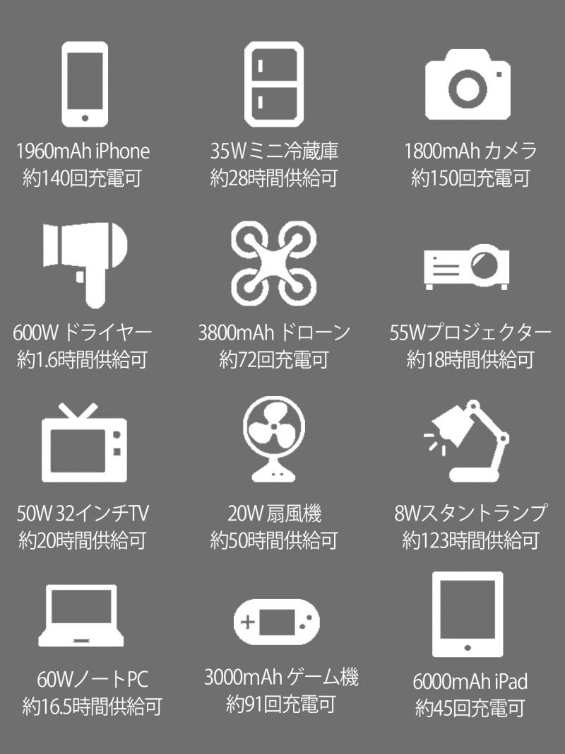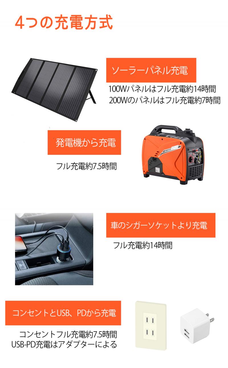 • アウトドア・キャンプ・車中泊で長時間使用できるポータブル電源