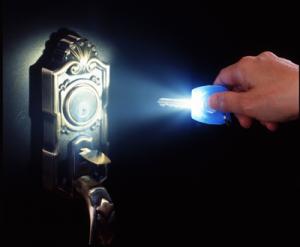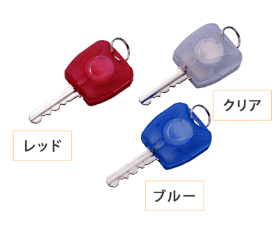 | 手持ちの鍵にかぶせるだけでライト付に変身! 白い光で手元を照らします!! 夜、鍵を開けるときなどいちいち鍵とは別にライトを取り出す必要がないのでとっても楽です。 |