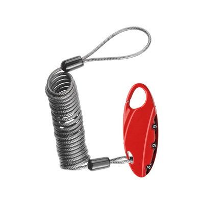 防犯グッズ自転車・スノボなどに! ワイヤー+南京錠 レッド PL-679+leash