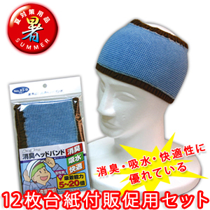 臭い対策製品!消臭機能が非常に高いヘッドバンド!12枚台紙付販促用セット
