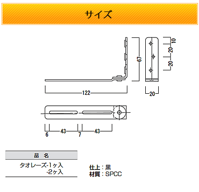 商品名 L型転倒防止金具 タオレーズ(5個セット) B-409