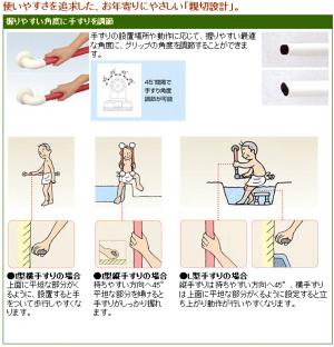 1.手すりの設置場所や動作に応じて、握りやすい最適な角度に、調節することができます。
