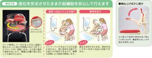ここは空白です 跳ね上げ式ひじ掛けと本体の回転で座位を安定させたまま介助動作を行えます。