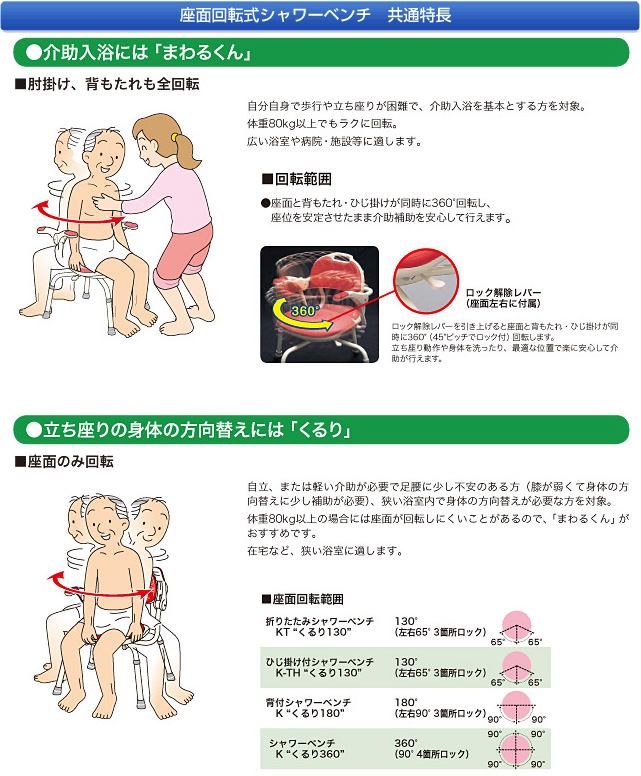 商品名 安寿 ひじ掛け付シャワーベンチ “まわるくん”