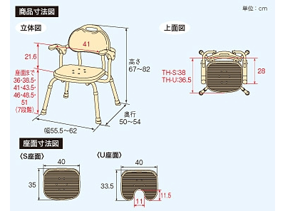 商品名 安寿 ひじ掛け付シャワーベンチTH−S
