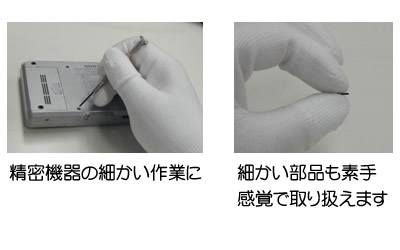 メモリー増設時に、PC内部作業に、精密工作・防護手袋のインナーとして。