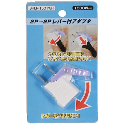 コンセントから簡単に引き抜けるレバー付プラグへ変換できるアダプターです。