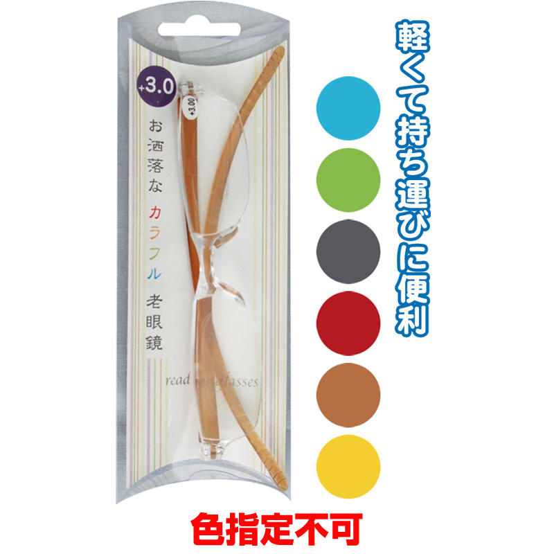 介護用品【在庫限り】 お洒落なカラフル老眼鏡(プラス3.0)色指定不可