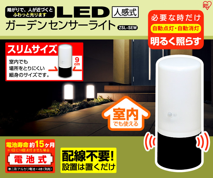 防犯グッズアイリスオーヤマ 電池式ガーデンセンサーライト ZSL-SEW