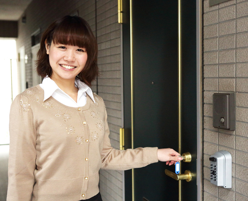 • カギだけでなくカードも保管可能で、鍵の出し入れから施解錠まで片手で簡単に行え、荷物を持っている状態や夜間でも快適にご利用いただけます。