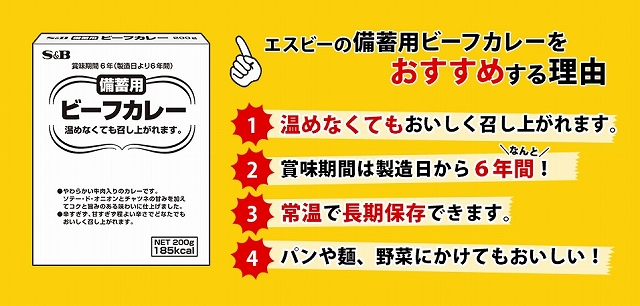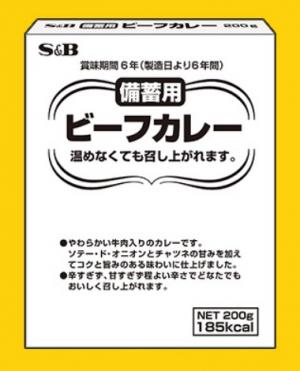 ここは空白です エスビー食品が備蓄用に開発した長期保存のビーフカレーです。