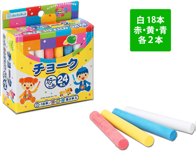 【在庫限り】箱入りチョーク (24本入)3色×各2本・白18本