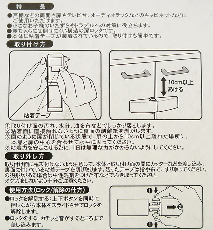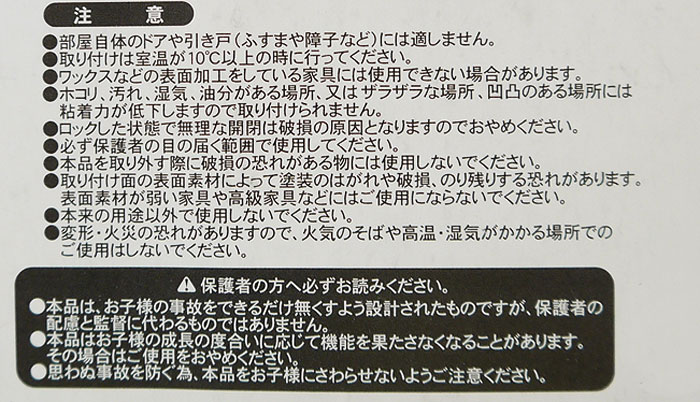 - 赤ちゃんには開けにくい構造の扉ロックです。