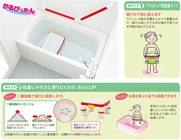 ここは空白です しっかり固定される二重吸盤タイプの浴槽台。
