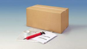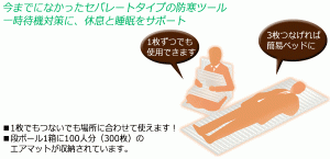 段ボール1箱に100人分(300枚)のエアマットが収納されています。