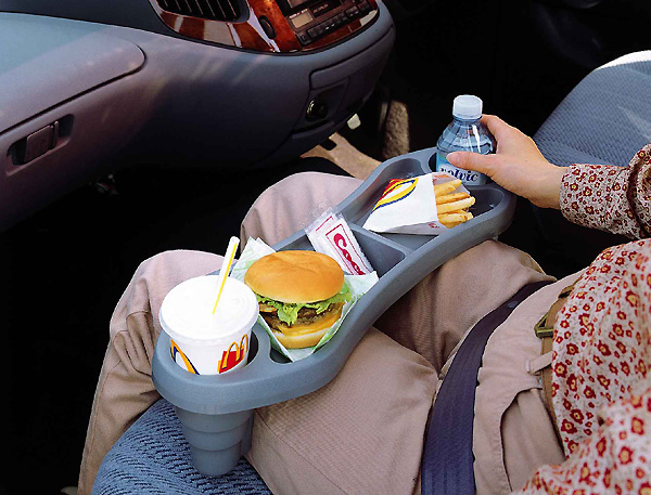 • ひざをはさんでしっかり安定!ドライブ中の食事も安定。