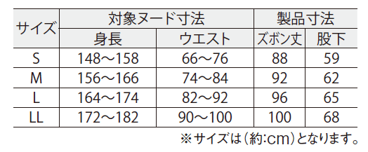 LL 身長:172〜182cm ウエスト:90〜100cm