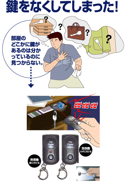 • 室内にある鍵をピピという大きな音と青ランプで探すことができます。