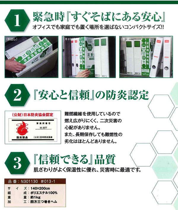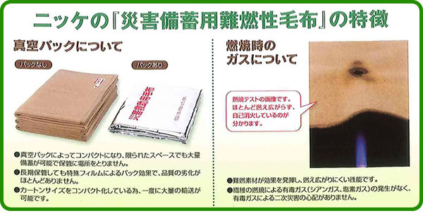 難燃繊維を使用しているので燃え広がりにくく、二次災害の心配もありません。