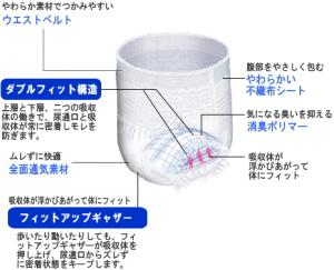 - フィットアップギャザーが吸収体を押し上げ、尿道口からズレずに密着します。