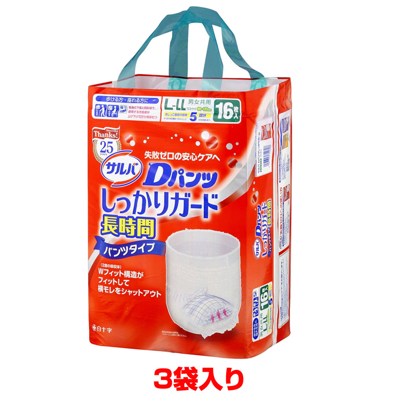 商品名 白十字 サルバDやわ楽パンツ しっかり長時間16枚入(L−LL) 3個セット