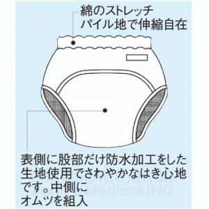 • 表生地にはストレッチパイルを、中にはエアニットおむつを縫い込んでありますので、おむつを着用していただかなくて大丈夫です。