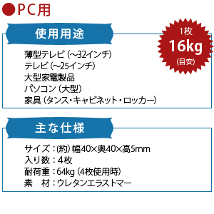 - 工事などは一切不要。家具や家電製品の底面に敷くだけの簡単設置です。