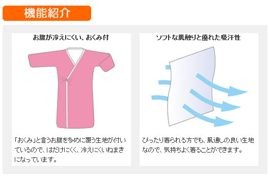 一流紡績特選原糸を使用した、柔らかガーゼねまき。お腹が冷えにくいおくみ付。