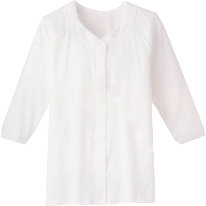 • 高齢者の体型に合わせ後身ごろの丈と巾を広くした立体パターンで、裾が開かないようにお腹周りもゆったりしています。