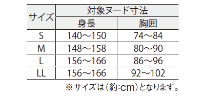 サイズ 身長:156cm〜166cm、胸囲:92cm〜102cm