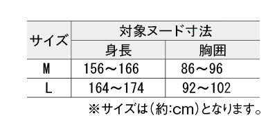 M 身長:156cm〜166cm、胸囲:86cm〜96cm