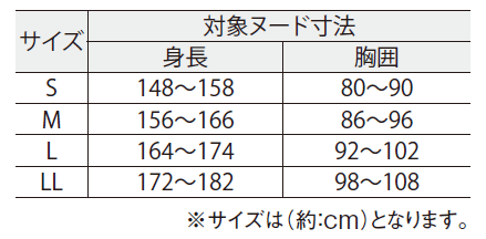 サイズ 身長:172〜182cm 胸囲:98〜108cm