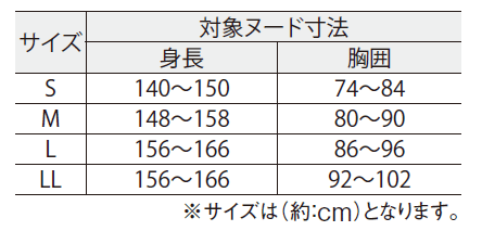 M 身長:148〜158cm 胸囲:80〜90cm