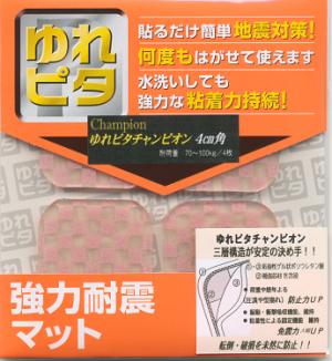 防災グッズ強力耐震マットゆれピタチャンピオン 四角4枚入り(4×4cm) YF-40