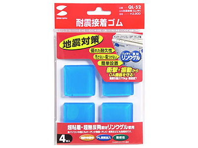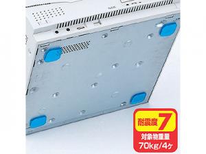 - 耐震性は単純に機器の重量だけでなく、形状・重心・設置面の素材(設置面の素材により粘着力が変わる為)等により決まりますので、耐震性を高める為にはできるだけ設置面の広い面積で本製品をお使いください。