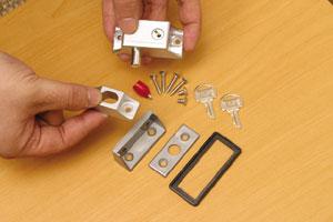 • スリムボディで狭い箇所にも取り付けでき、3種類の受け金具を組み合わせて、家具や引き違い戸などアイデア次第でいろいろな箇所へ対応できます。