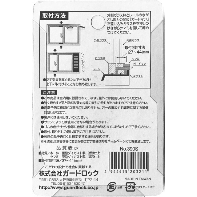商品名 サッシ窓用補助錠 ガードマン No.390