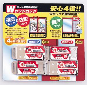 - 換気ロック、クレセント錠との併用による防犯ロックを目的とした簡易サッシ用補助錠。